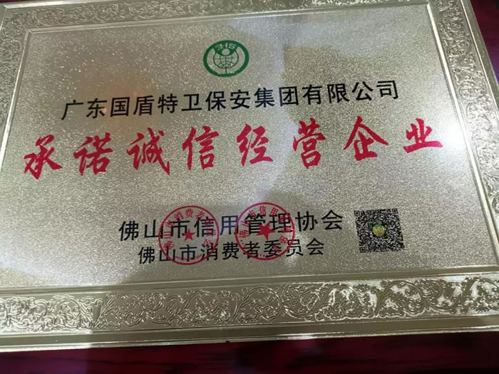 為加快推進(jìn)佛山市企業(yè)信用體系建設(shè),規(guī)范佛山市企業(yè)信用評(píng)價(jià)工作,提升佛山市各行各業(yè)的管理水平。今天上午,佛山市信用管理協(xié)會(huì)、佛山市消費(fèi)者委員會(huì)向全市30多家受到社會(huì)肯定、有良好聲譽(yù)的企業(yè)頒發(fā)了《承諾誠(chéng)信經(jīng)營(yíng)企業(yè)》牌匾。廣東國(guó)盾特衛(wèi)保安集團(tuán)再獲殊榮,名列其中。