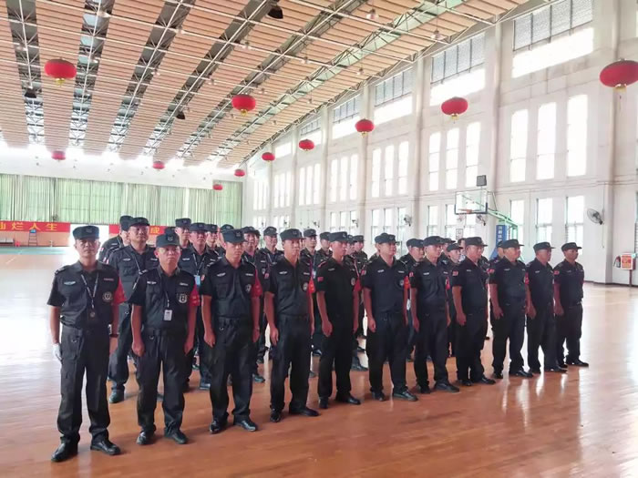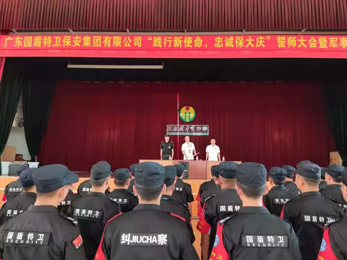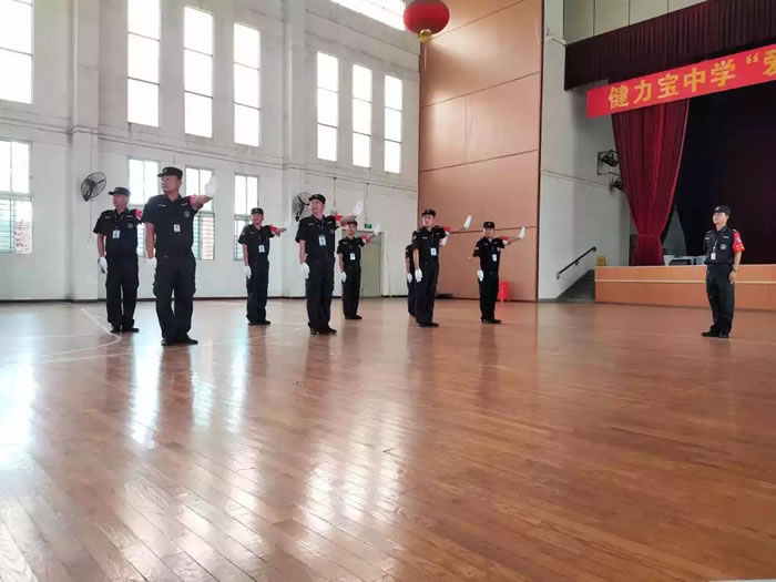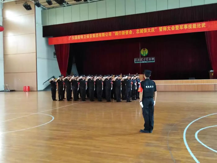 為慶祝中華人民共和國成立七十周年大慶的到來,為人民群眾提供更安全的環境,提升我集團全體隊員的綜合素質,打造一支訓練有素、專業技能較高的安保隊伍。2019年6月2日下午,在健力寶中學體育館內,一場主題為“踐行新使命,忠誠保大慶”誓師大會暨軍事技能比武活動精彩上演。來自集團五個保安部的數十名保安隊員參加了比賽,公司管理層出席觀摩活動。