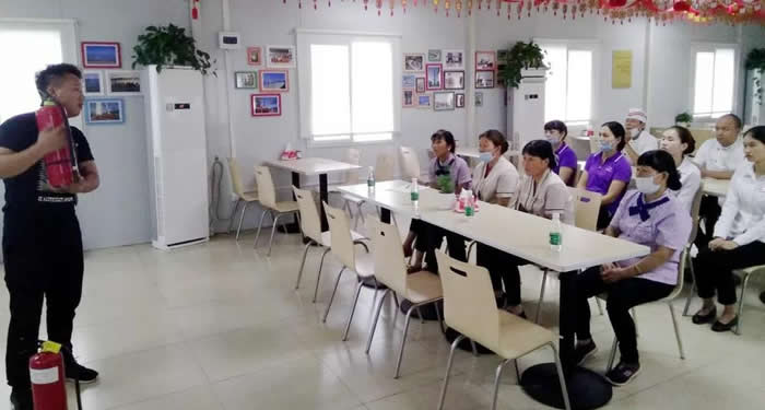 培訓過程中,佛山國盾特衛(wèi)保安公司教官就滅火器的正確使用與技能操作、火災(zāi)防范注意事項及初級火災(zāi)的正確處置、緊急情況下的逃生和應(yīng)急疏散等方面進行了詳細的講解,并現(xiàn)場示范了滅火器的操作技能和使用方法,同時要求食堂工作人員要做好“三關(guān)”和“四熟悉”,“三關(guān)”即下班前要關(guān)門窗、關(guān)電源、關(guān)氣源;“四熟悉”是熟悉本單位疏散逃生路線、熟悉引導人員疏散程序、熟悉避難逃生設(shè)施使用方法、熟悉火場基本逃生技能。
