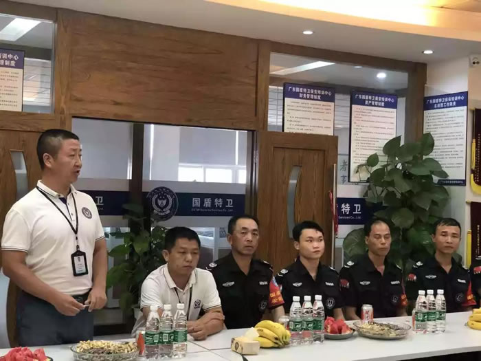 首先,夏學樹董事長代表公司對所有堅守在一線崗位的復轉退伍軍人表示節日的祝賀與親切的慰問,充分肯定了復轉退伍軍人在國盾特衛保安集團所處的重要地位和作用,動員和號召企業所有復轉退伍軍人把軍人特有的服從意識、責任意識和紀律意識,貫穿和融化在保安服務和管理的各個環節,以出色的成績在各自的崗位上發光發熱!