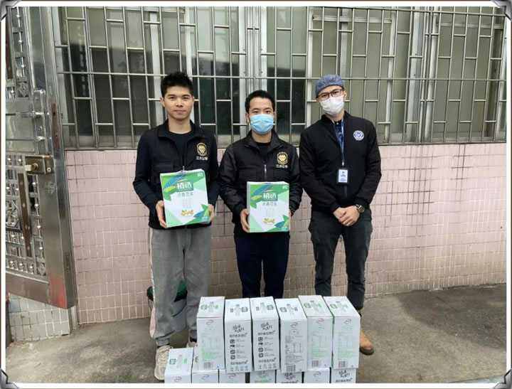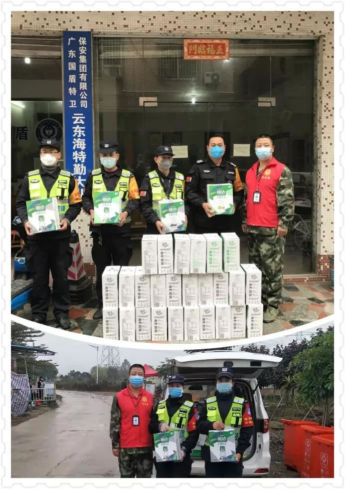 同日下午,廣東國盾特衛(wèi)保安集團(tuán)有限公司作為三水區(qū)禁毒協(xié)會會長單位,三水區(qū)禁毒協(xié)會會長、集團(tuán)黨支部書記、董事長夏學(xué)樹通過三水區(qū)禁毒協(xié)會為一線民警、輔警、醫(yī)護(hù)人員送上牛奶、方便面、八寶粥各十箱等食物,并表示:“你們一定要注意好安全,大過年的還要站在寒風(fēng)中排查疫情,很辛苦也很危險(xiǎn)。我們別的也不能干什么,捐贈一些食物給你們,餓了就吃點(diǎn)。”