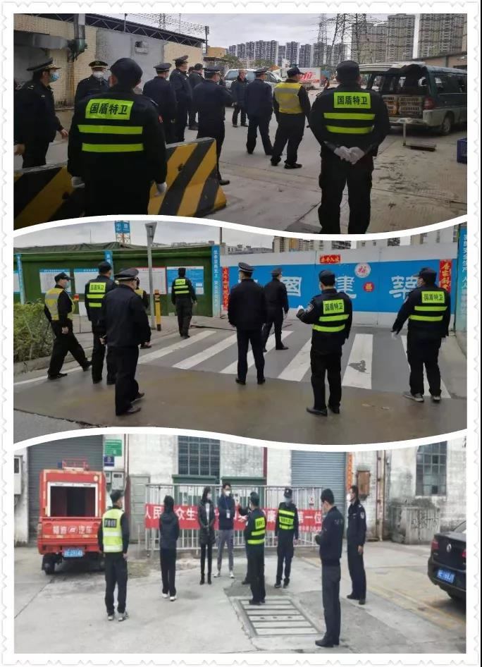 為保障春節期間市容市貌和當前新冠肺炎疫情防控等工作需要,受佛山市禪城區城市管理和綜合執法局委托,國盾特衛保安集團公司派遣業務能力突出,形象素質較高的安保人員,每天 24 人分四組分赴協助祖廟分局、張槎分局、石灣分局、南莊分局執法人員全力做好節日保障和疫情防控等工作。協助、勸導、制止、保障區城內的亂擺賣、占道經營、亂拉掛等市容違法行為,協助執法人員對市場、工地、河道、小區等地段的巡查工作,同時做好各類突出事故的應急保障工作。