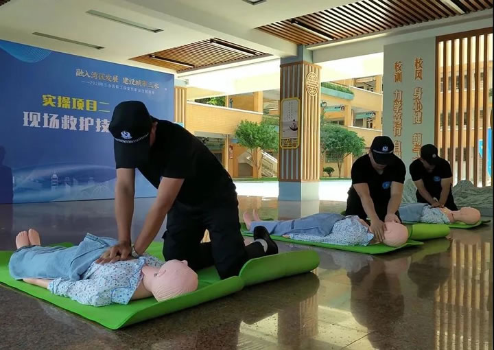 “快來人呀,有人暈倒了,請(qǐng)幫忙撥打120,有會(huì)救護(hù)的趕快來幫忙。” 現(xiàn)場(chǎng)救護(hù)技能的考核項(xiàng)目為模擬單人徒手成人心肺復(fù)蘇,只見參賽選手發(fā)現(xiàn)病人暈倒后,迅速呼叫并判斷病人呼吸和脈搏,通過人工呼吸和胸外心臟按壓進(jìn)行急救,展現(xiàn)出正確、有效的復(fù)蘇操作流程。