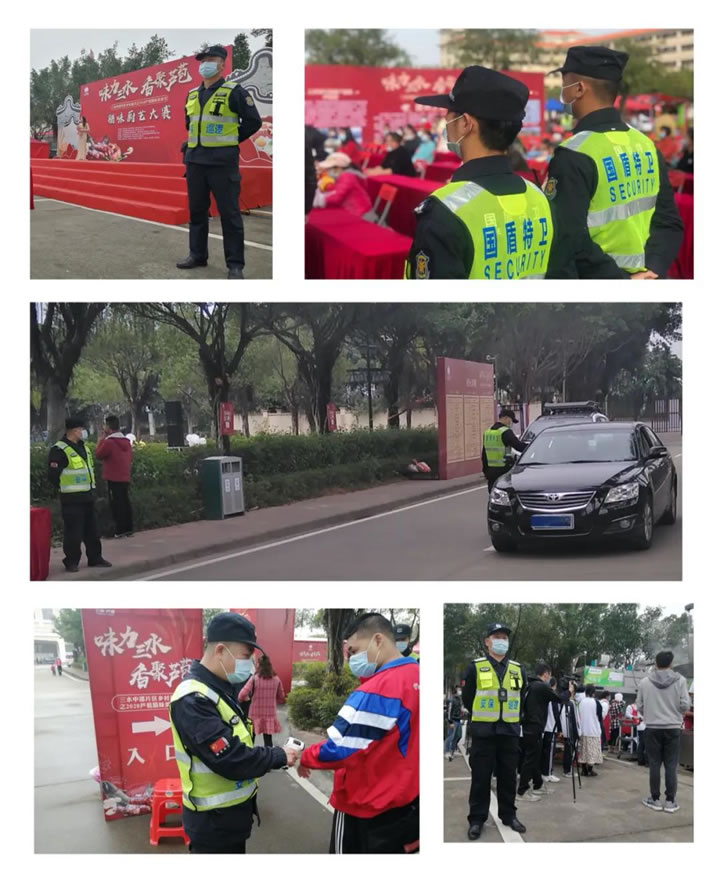 奔涌北江聯(lián)結(jié)廣佛,多彩臘味情牽灣區(qū)。12月11~13日,“味力三水、香聚蘆苞”三水中部片區(qū)鄉(xiāng)村振興之2020蘆苞臘味美食節(jié)將在三水蘆苞溫泉度假村舉行。為確保文化美食節(jié)安全順利舉行,維護(hù)現(xiàn)場(chǎng)良好秩序,展示魅力三水形象,國盾特衛(wèi)保安員認(rèn)真貫徹上級(jí)公安部門的部署要求,強(qiáng)化政治意識(shí),奮力擔(dān)當(dāng)作為,從嚴(yán)從細(xì)落實(shí)安保措施,全力以赴投身美食文化節(jié)安保工作中去。
