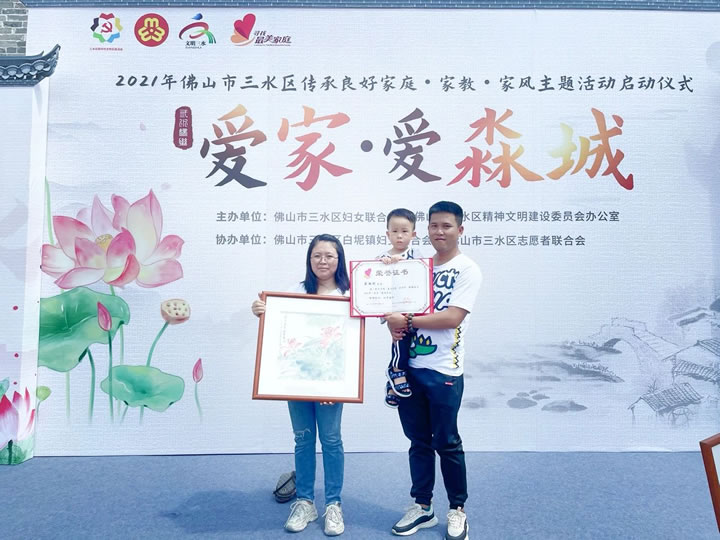 適逢5月15日國(guó)際家庭日,由三水區(qū)婦女聯(lián)合會(huì)、區(qū)文明辦主辦,區(qū)志愿者聯(lián)合會(huì)、白坭鎮(zhèn)婦聯(lián)協(xié)辦的“愛(ài)家·愛(ài)淼城”—— 2021年三水區(qū)傳承良好家庭·家教·家風(fēng)主題活動(dòng)啟動(dòng)儀式于白坭鎮(zhèn)碧云戲臺(tái)舉行,集團(tuán)公司婦聯(lián)副主席、市場(chǎng)部部長(zhǎng)梁淑媚家庭獲得2021年三水區(qū)“最美家庭”稱(chēng)號(hào)。