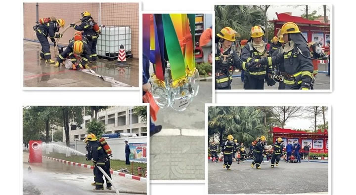 此競賽為大家提供了一個相互學習交流的機會和平臺,根據湛江市消防救援支隊通知精神,赤坎消防救援大隊指派湛江卷煙廠組隊代表參加消防業務技能比武,煙廠企業領導及分公司領導高度重視,積極抽調精干力量組成參賽隊伍。比賽當日,我司代表參賽隊員斗志昂揚,大家齊心協力、默契配合、操作熟練,快速、高效地完成了一項又一項技能比武項目,在每一位參賽隊員的共同努力下,摘取了一項又一項的桂冠,同時榮獲了團隊榮譽,充分發揚了國盾特衛人能吃苦、能戰斗的優良作風,展現了我司保安隊員扎實的消防技能水平。