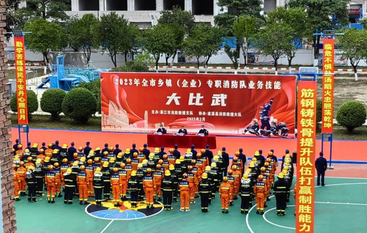 2023年2月9日上午,湛江市消防救援支隊在遂溪縣消防救援大隊舉辦了“2023年全市鄉鎮(企業)專職消防隊業務技能大比武活動”,此次活動設置的街道志愿消防隊(微型消防站)比武項目為“1人3盤水帶連接操”、“原地著全套滅火防護裝備操”、“滅火器撲救初期火災操”、“手抬機動泵出水操”等四個項目。國盾特衛保安集團湛江分公司駐湛江卷煙廠保安隊伍,以周宏杰隊長為代表的參賽隊伍榮獲三個個人項目第一、一個個人第二、一個個人第三、團體第一名的好成績,為企業以及國盾特衛保安集團贏得了榮譽,值得贊譽。