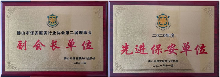 在2020年度創先爭優評選活動中,我司被評為“佛山市保安服務行業先進保安單位”、王延周同志獲得“佛山市保安服務行業協會優秀保安員”稱號;