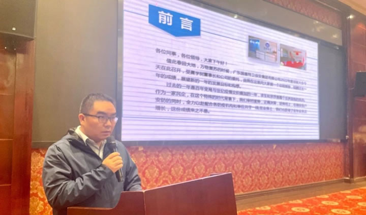 2月25日下午,廣東國盾特衛保安集團有限公司召開2022年度工作總結表彰大會,集團公司各部門員工、各區域大隊長以及受表彰的先進分隊代表和優秀保安員等140多人參加了此次大會。