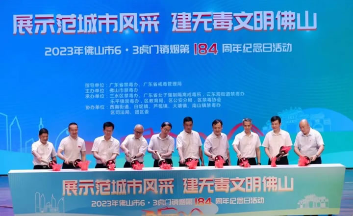 6月2日上午,在虎門(mén)銷煙184周年紀(jì)念日來(lái)臨之際,由省禁毒委、省戒毒管理局指導(dǎo),市禁毒委主辦,三水區(qū)禁毒委等單位聯(lián)合承辦的2023年佛山市“6·3”虎門(mén)銷煙184周年紀(jì)念日市主會(huì)場(chǎng)活動(dòng)在三水區(qū)新城文化活動(dòng)中心大劇場(chǎng)舉行。佛山市各區(qū)同步開(kāi)展分會(huì)場(chǎng)紀(jì)念宣傳活動(dòng)。