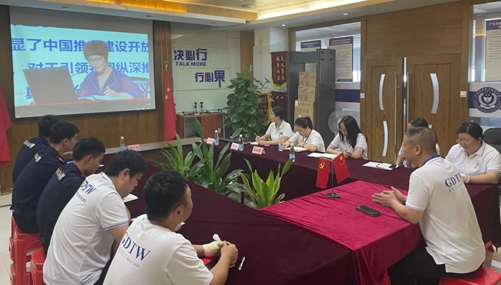 7月1日上午9時(shí)許,廣東國(guó)盾特衛(wèi)保安集團(tuán)有限公司會(huì)議室內(nèi),集團(tuán)黨支部副書(shū)記、董事長(zhǎng)助理鄭紅戰(zhàn)帶領(lǐng)公司全體黨員、預(yù)備黨員重溫入黨誓詞,并參與佛山市委組織的萬(wàn)名黨員同上“云黨課”活動(dòng)。這是慶祝中國(guó)共產(chǎn)黨成立102周年系列活動(dòng)的重要內(nèi)容,也是國(guó)盾特衛(wèi)保安集團(tuán)黨史學(xué)習(xí)教育常態(tài)化、長(zhǎng)效化的具體抓手。在這個(gè)特殊的日子里,讓我們共同回顧黨的光輝歷程,展望美好未來(lái)。