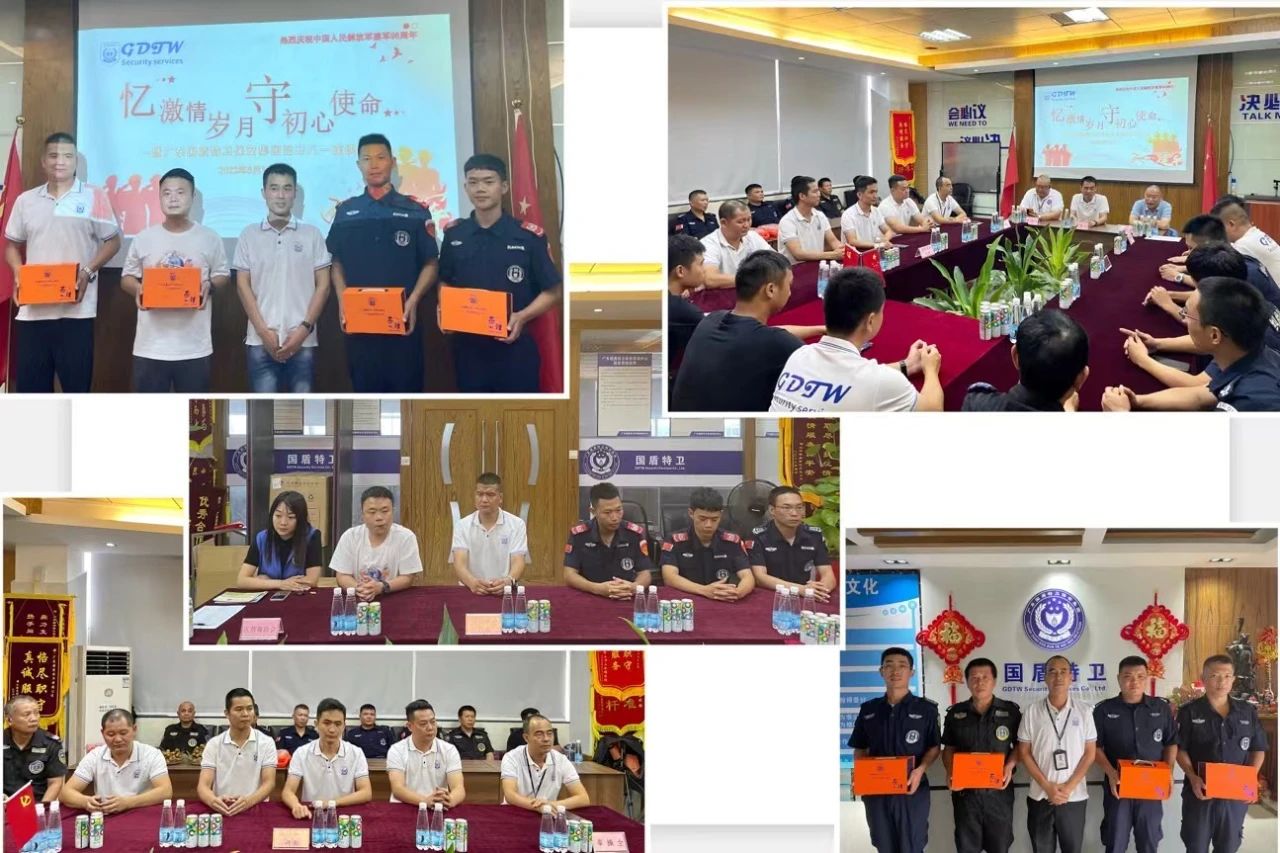 在中國人民解放軍建軍96周年到來之際,為貫徹習近平總書記關于退役軍人工作重要論述,落實黨中央、國務院有關決策部署的相關要求,大力弘揚軍愛民、民擁軍的光榮傳統,凝聚軍民攜手奮進、攻堅克難的強大力量,更好地發揮退役軍人的工作積極性。8月1日下午,廣東國盾特衛保安集團組織公司各部門的退役軍人代表開展以“憶激情歲月,守初心使命”的八一主題系列活動,動員和激勵公司退役軍人不忘初心、奮發有為,在新時代、新征程上聽黨話、跟黨走,為保安事業和集團發展作出積極貢獻。