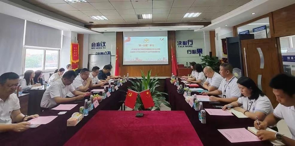 與會人員還學習了“第一議題”—學習貫徹習近平新時代中國特色社會主義思想主題教育工作會議在京召開習近平發表重要講話精神。佛山市佛鐵實業有限公司黨支部宣傳委員、總經理助理李松華帶頭領學“劃重點”、雙方共同深刻學習了習近平總書記重要講話精神,拓展了支部共建新形式,帶動了兩個支部黨員高漲的學習熱情,進一步掀起了黨史學習教育的熱潮。