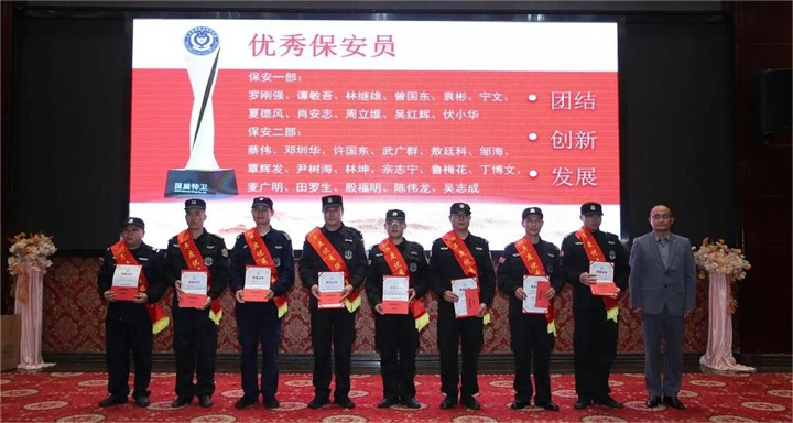經營會議結束后,集團公司召開2023年度工作表彰會議暨迎新聯歡晚會,集團公司各部門員工、分公司代表、各區域大隊長以及受表彰的分隊代表和優秀保安員等180多人出席。