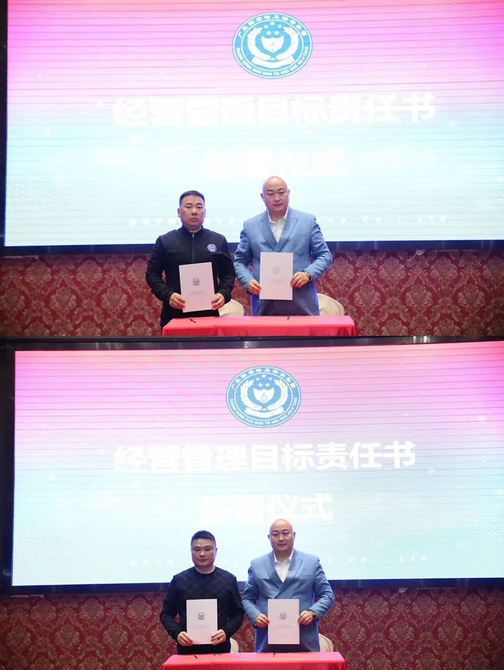 責任上肩,披荊斬棘。會議還舉行了2024年度經營管理目標責任書簽訂儀式。目標責任書的簽訂,明確了2023年的奮斗目標和發展方向,也表現了國盾特衛人使命必達的決心與信心。