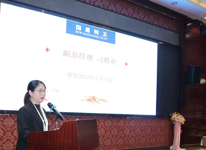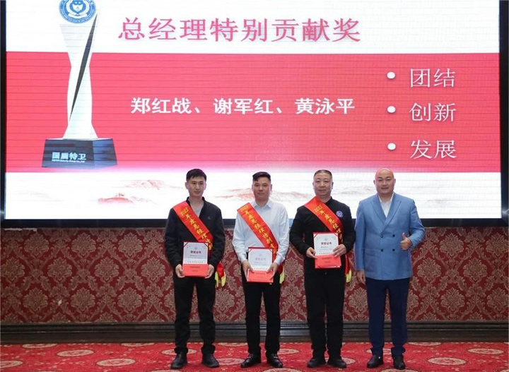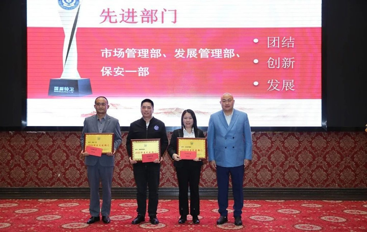 集團公司黨支部書記、董事長夏學樹發表總結講話,首先肯定了2023年全體國盾特衛人取得的顯著成績,并向奮戰在一線的員工致以崇高敬意和衷心感謝,向受到表彰的集體和個人表示熱烈的祝賀。然后,從當前經濟發展形勢、行業形勢、市場結構等多方面,客觀分析目前集團公司在發展中存在問題以及遇到的瓶頸。他強調,圍繞“穩增長”發展主線,聚焦“市場拓展、信息化建設、績效激勵、人才引培”等四大重點,在新的一年,要求全體國盾特衛人積極把握時代機遇的同時,充分發揮自身優勢和效應,以鞏固現有資源為基礎,加快實施創新驅動,促進動能轉換;以市場需求為導向,積極拓展保安市場新業態;以品質服務為主線,深挖綜合安保的利潤增長極;著力練好企業內功,深化“提質、增效、降本”,緊貼市場趨勢,化挑戰為機遇,奮力開創高質量發展新局面。