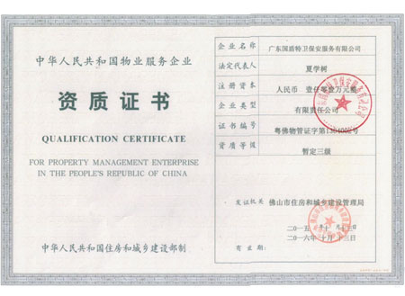 物業(yè)服務企業(yè)資質證書